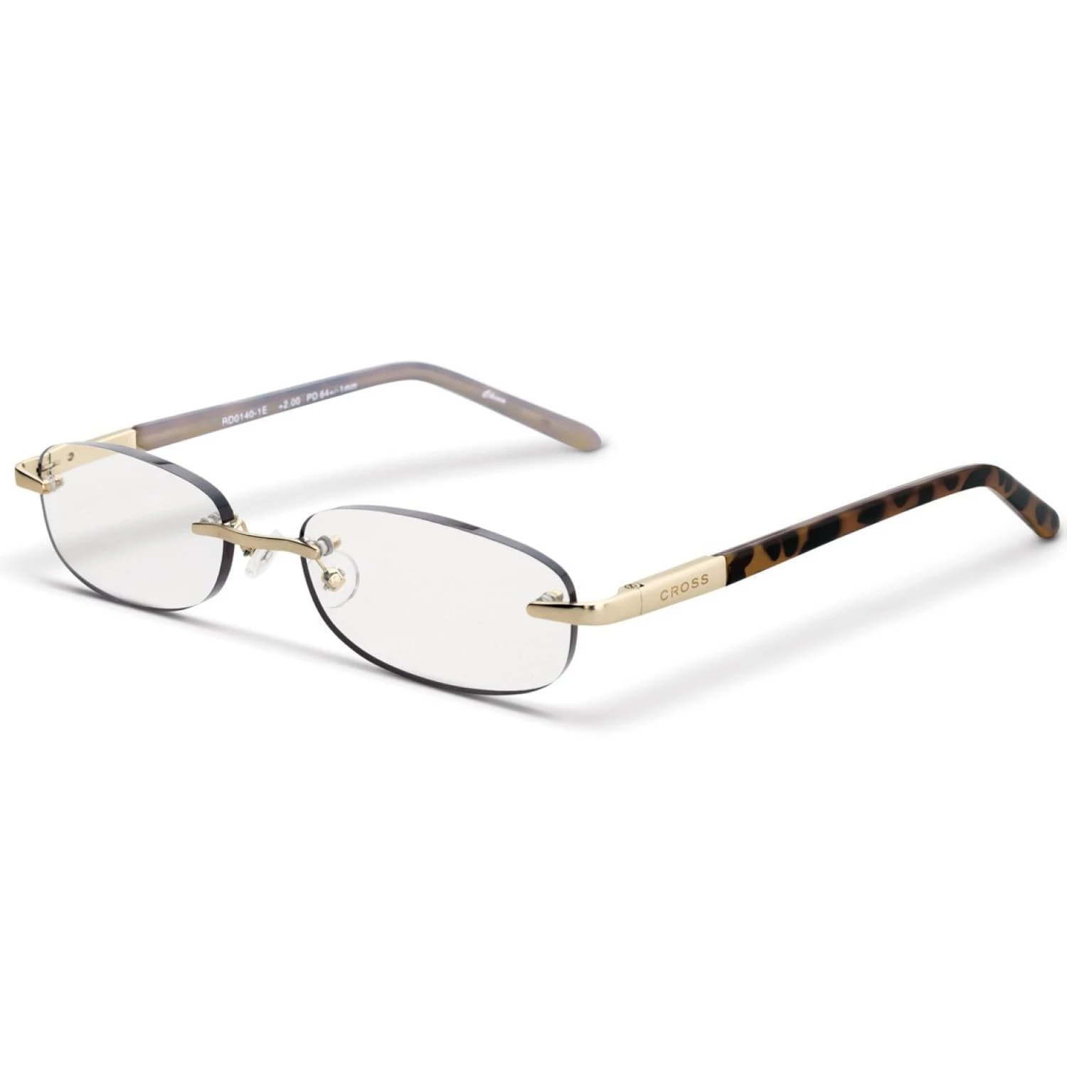 This petite rimless style lens has extended gold-tone appointments with trendy purple tortoiseshell temples that are almost iridescent. We call it feminine elegance. Youll call it fabulous.