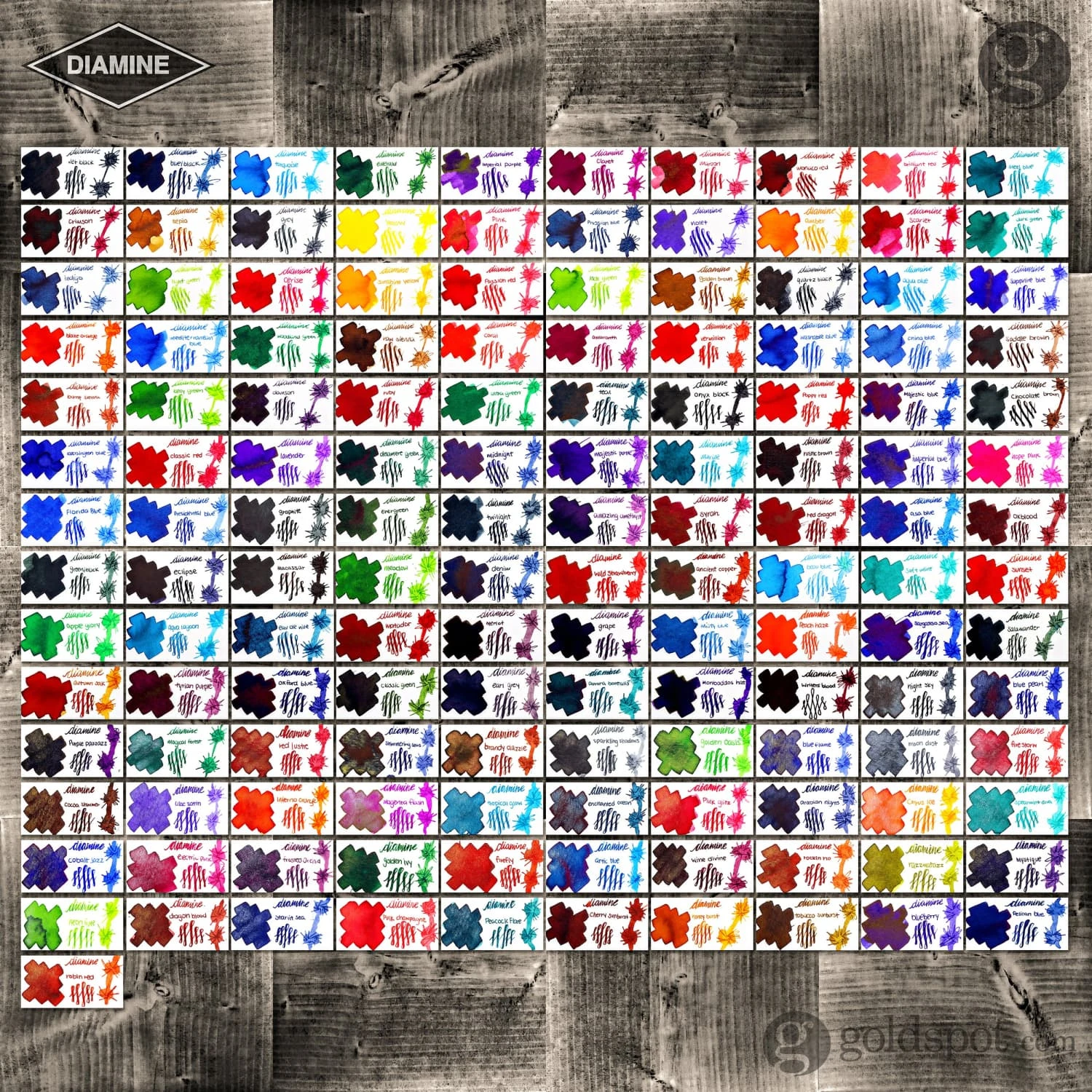 Diamine colors in 30mL and 80mL bottles with some colors also being offered ink