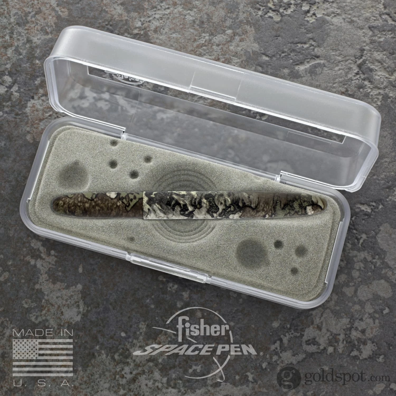 The Fisher TrueTimber Strata Camouflage Bullet Space Pen writes at any angle upside down underwater and in harsh temperature conditions (hot and cold). When closed this pen slightly resembles a long bullet and it is this design that has been exhibited for a number of years by New York’s Museum of Modern Art as an outstanding example of contemporary industrial design. Each Fisher Bullet Space pen comes in an attractive gift box with a small pamphlet that provides the interesting history of the Fisher Space Pen. Open the Bullet measures 5.3 inches with a closed length of 3.7 inches. All the Fisher Bullet Space Pen Series contains a PR4 Black Ink Medium Point Refill.