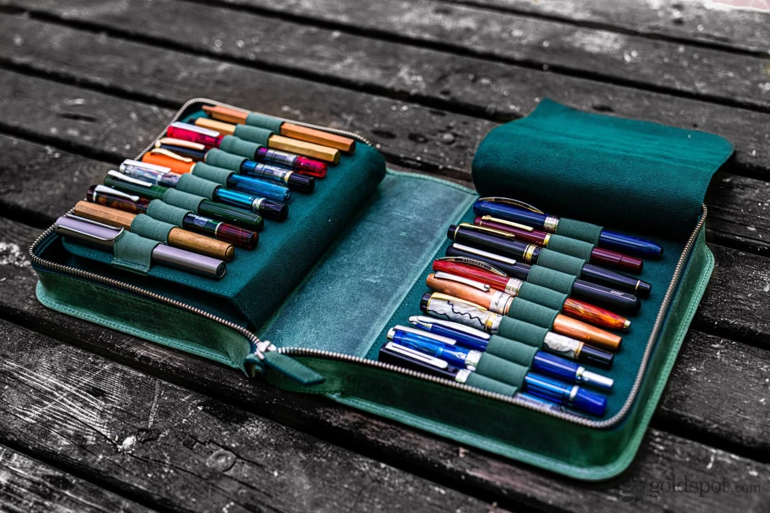 This Leather Zippered 40 Pen Case in crazy horse forest green has a velvet lined interior. When you want to carry your favorite pens, you want them protected in your bag, purse or pocket to avoid ink leaking everywhere or getting them scratched. This leather pen holder is great to protect your fountain pens and keep them safe. Pens are not included