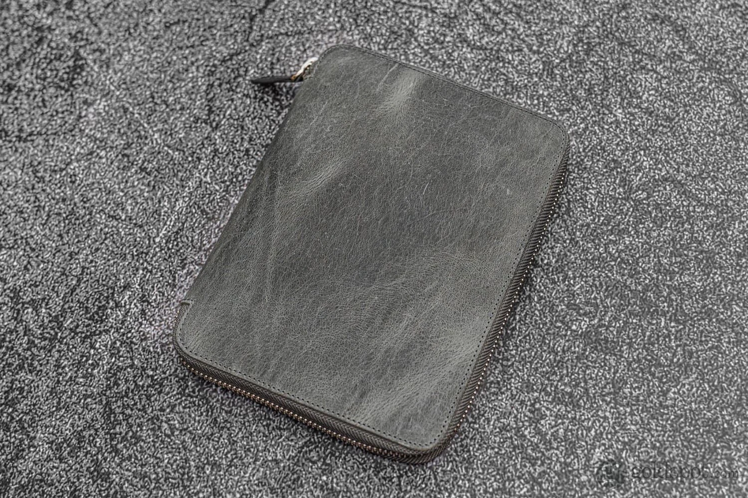 Galen Leather Zippered A5 Notebook Folio in Crazy Horse Smoky Grey