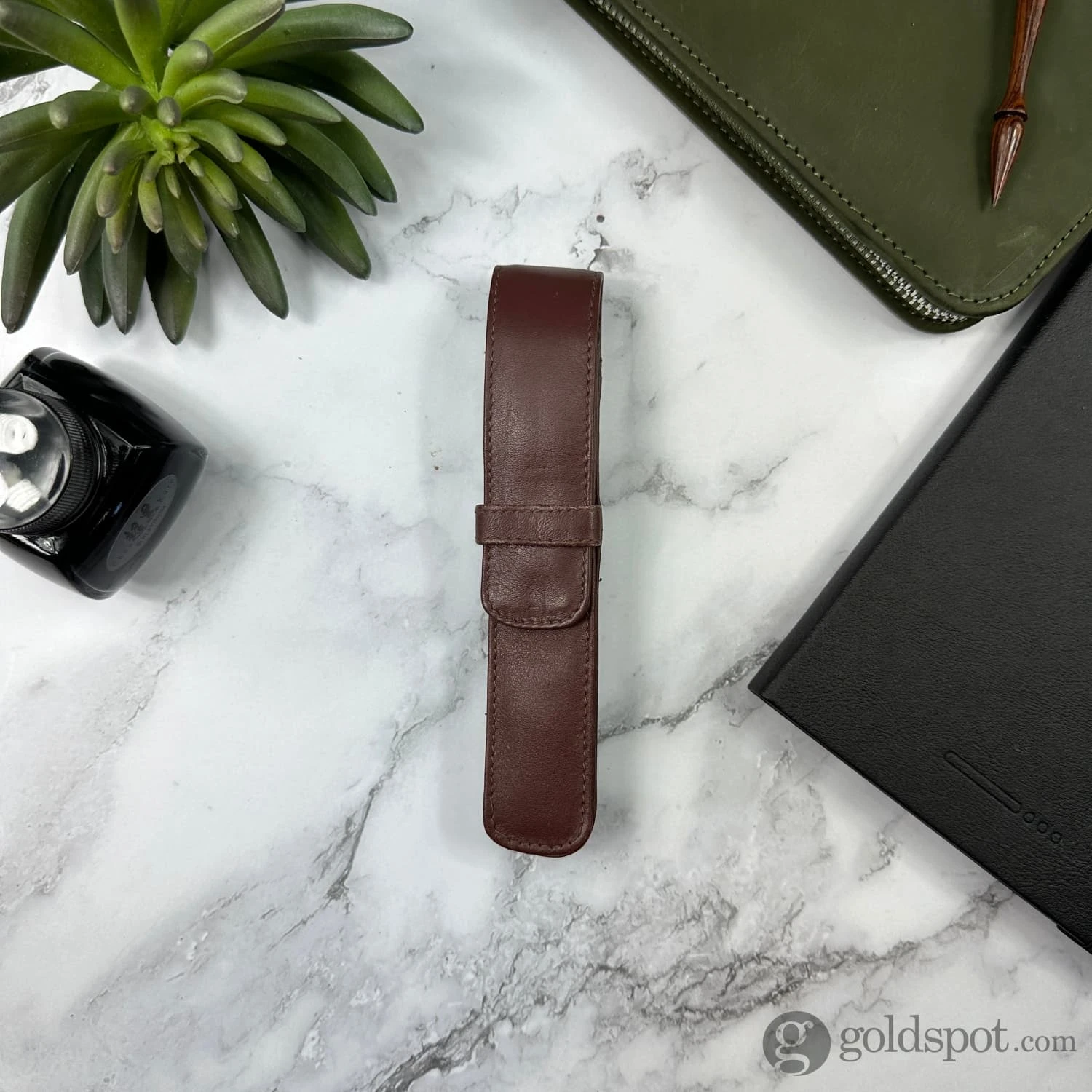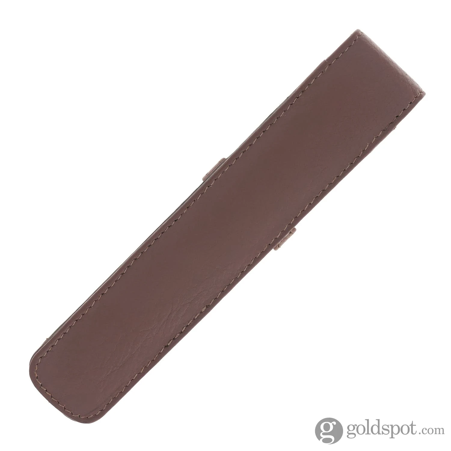 The earthy saddle brown color of this pen case has a warm, rustic appeal that feels right at home with pens that have gold trim.