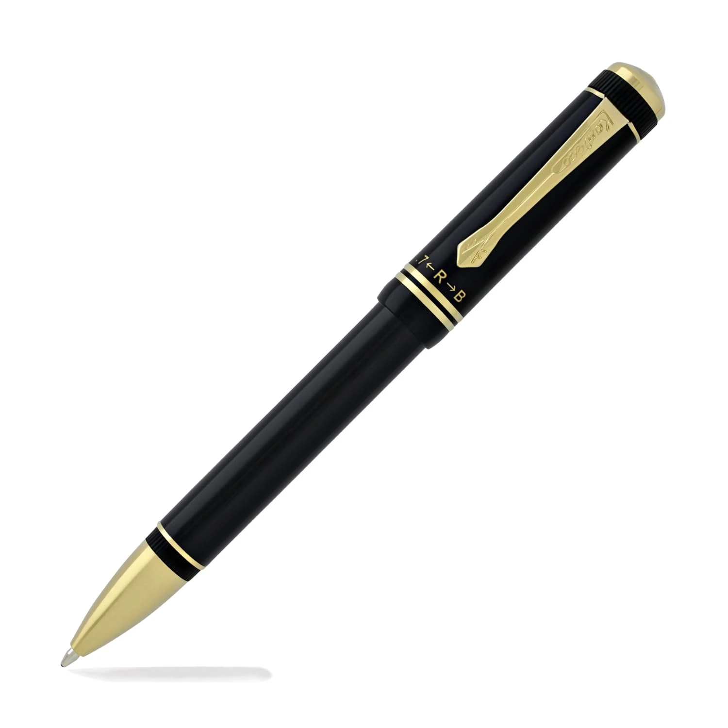 The Dia is a beloved Kaweco design first launched in the 1930s. Its unique design element is the distinctive knurling on the cap and barrel in polished black resin. Dia is a classic writing instrument equipped with a beautiful solid brass clip and high-quality PVD gold-plated accents. The only multipen we have seen with traditional styling, Kawecomat gives you a ball pen, 0.7mm pencil and highlighter point with an easy twist. Matching instruments include a capped rollerball, fountain pen, twist ball pen and 0.7mm twist pencil. Equipped with a beautiful solid brass clip
