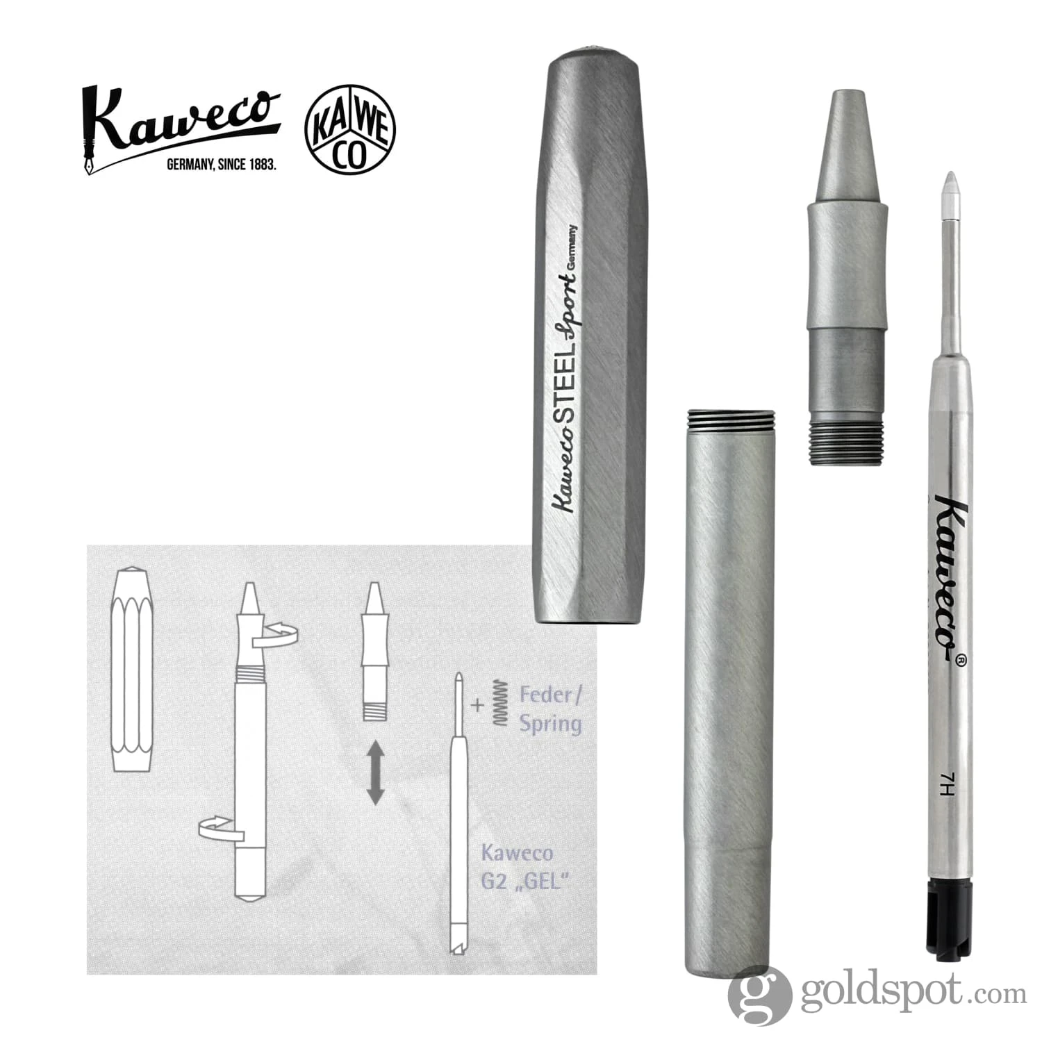The Kaweco STEEL Sport is a writing instrument worthy of a heavy-duty, functional everyday carry. This stainless steel writing instrument has an impressive weight and feel in hand. The brushed texture of the steel has a wonderful tactile sensation. The Sport collection starts off pocket-sized, but packs a punch in writing quality. The cap of the fountain pen and rollerball posts deeply on the barrel, extending the pen to a comfortable size.