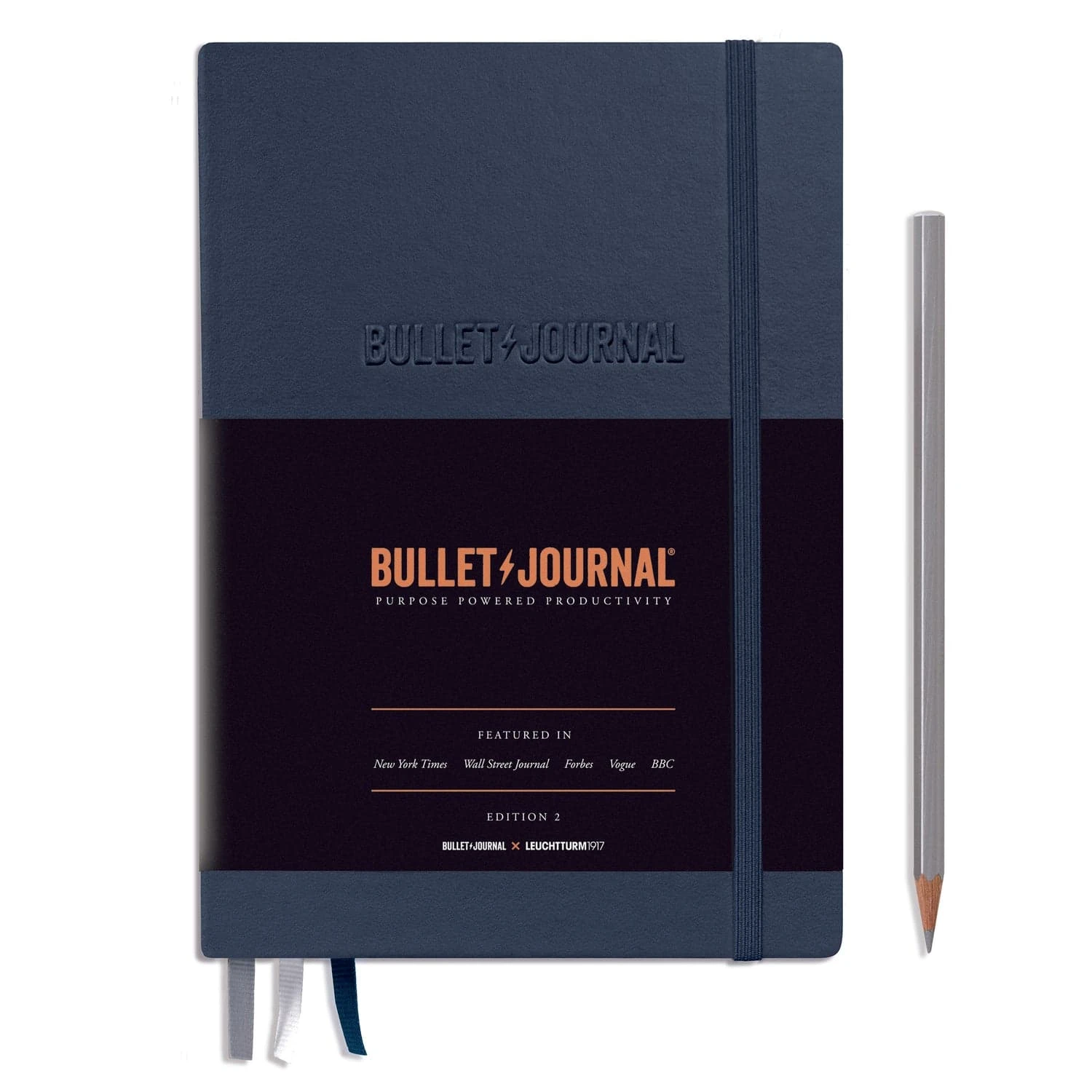 - Available in Black, Blush, and Blue colors with blind embossing “Bullet Journal”