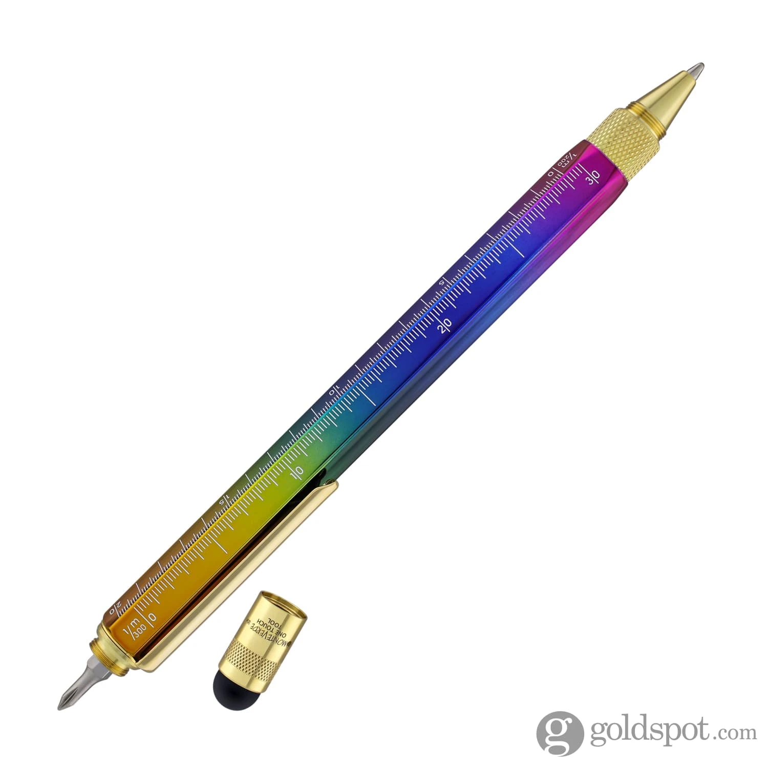 The pen with many talents. The Tool Pen Rainbow features heavy weight, PVD coated brass 6-sided barrel which houses a Fountain Pen, Ink•Ball™, ballpoint or mechanical pencil at one end and an ultra-sensitive touch screen stylus at the other. PVD coating over the pen’s solid brass body provides key performance features giving additional vibrance, luster and durability. Alluring play of purple, blue, green and yellow rainbow hues reflect on the mirror like surface of the pen. Clear lacquer plating on brass clip and trim further enhancing the elegance of each pen. The Tool fountain pen is equipped with a steel #5 nib. It comes in the following nib sizes: EXTRA FINE (0.2-0.3mm), FINE (0.5mm), MEDIUM (0.7mm), BROAD (1mm), STUB (1.1mm).