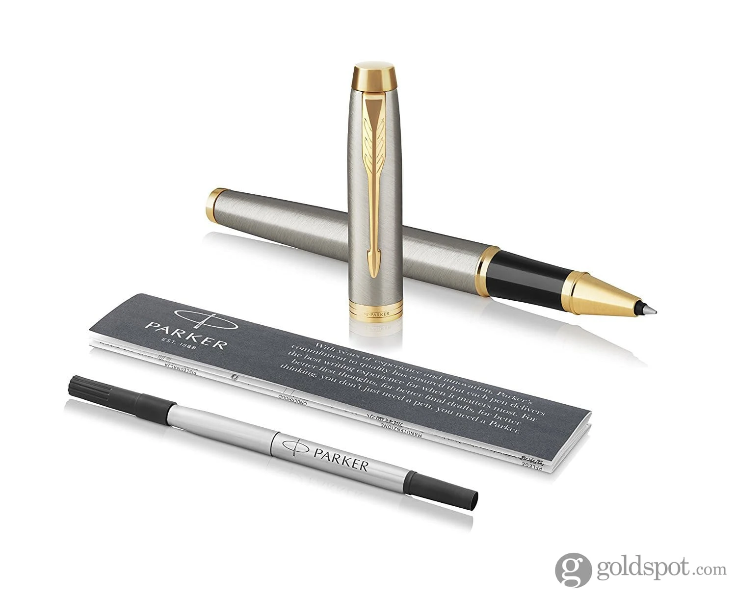 Parker IM Brushed Metal Gold Trim GT Rollerball Pen Details: