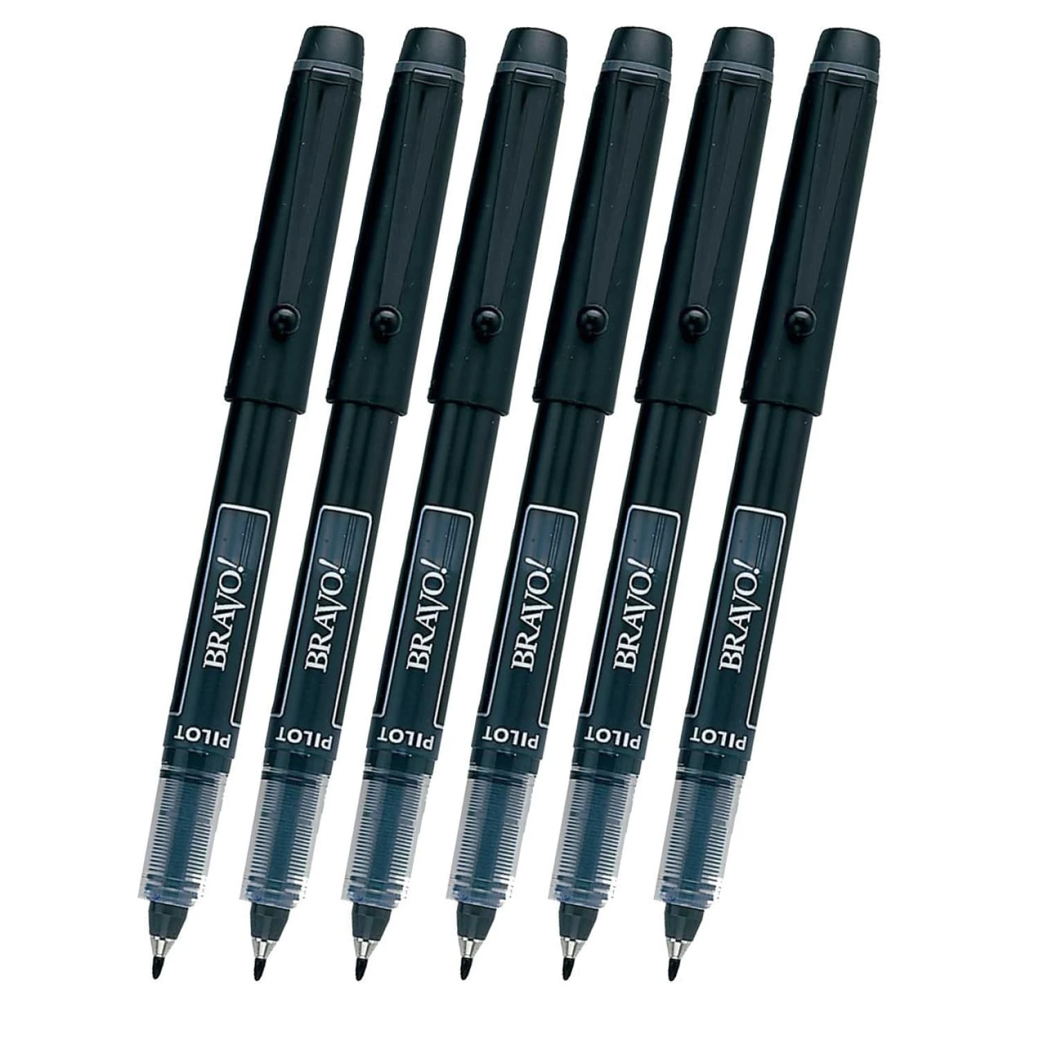Pilot Bravo Liquid Ink Marker Pen In Black – Bold Point – Pack Of 6