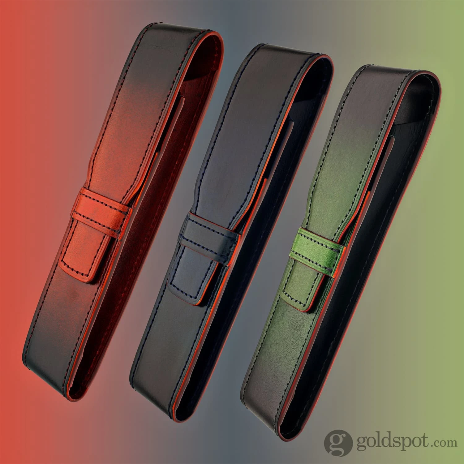 Introducing Pilot Fine Writing pen case offerings in partnership with Cypris. This leather collection, Pilot x Cypris, was created using the finest leather, polished with a very special method using Urushi Lacquer. These pen cases are available in a single sheath pen case size that will hold Pilot fountain pens with barrel widths up to and including a Yukari Royale body. They’re available in gorgeous, glossy ombre colors of Green, Red, and Blue with vibrant red edges. These are extremely limited in availability.