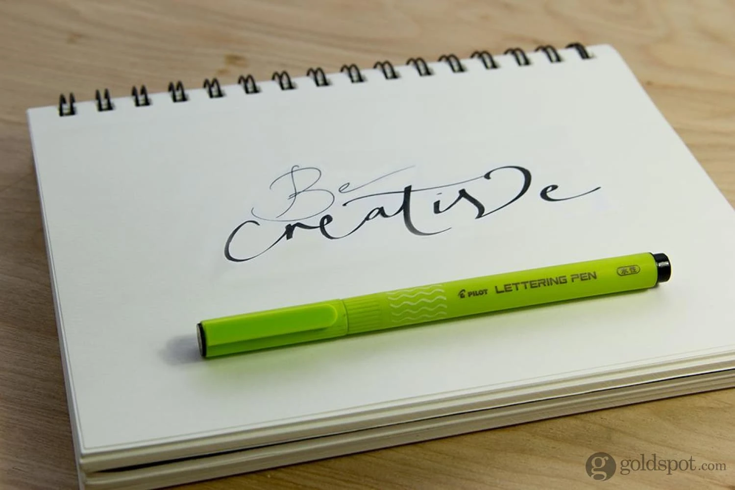 - Each lettering pen has a vivid lime green body with the tip width displayed on the top of the cap designed to keep the ink from drying out when not in use.