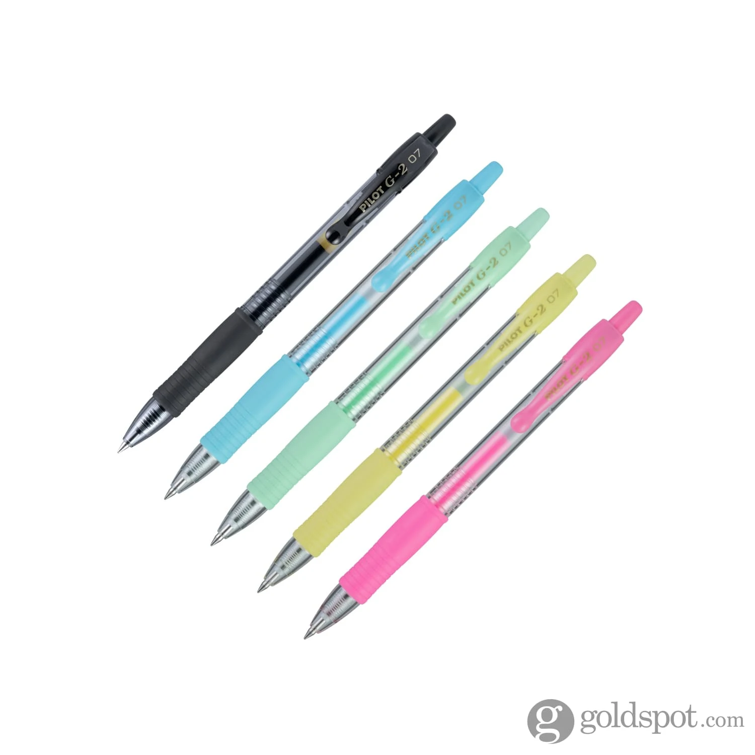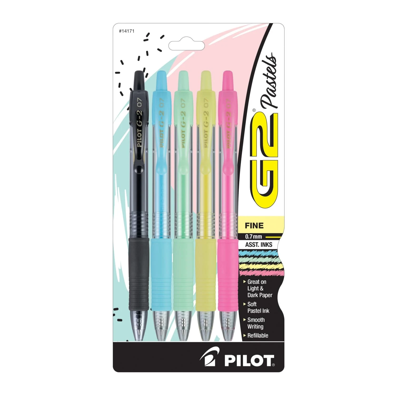 The Ideal Pen for Overachievers: The smooth writing, long-lasting Pilot G2 Retractable Pastel Gel Ink Pens in Black, Light Blue, Light Green, Yellow & Pink features a comfortable rubber grip, & is available in ultra fine, extra fine, fine, & bold point.