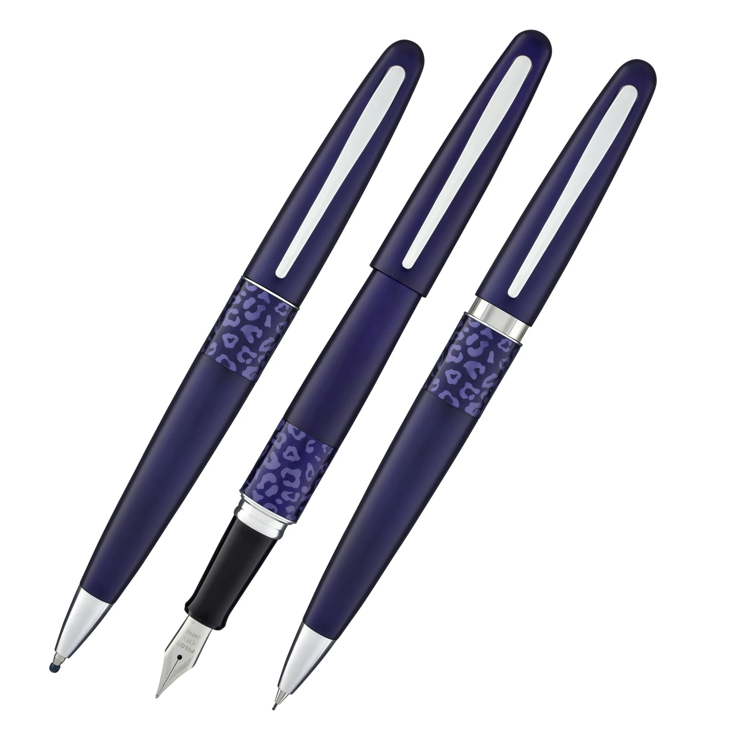 Bring a touch of your wild side to the most professional occasions. The sleek silhouette of the Pilot MR animal Collection Gift Sets combine traditional elegance with modern design. The softness of its fluid lines are highlighted by a discreet touch of wildness: the Middle Ring in its animal motifs. Each MR Animal Collection Gift Set is an affordable luxury, containing a Fountain Pen, Ballpoint and a Mechanical Pencil.