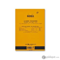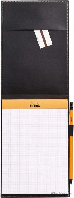 This Top-Stapled Rhodia Pad is perfect for restaurant wait staff and for daily task lists such as to do or shopping. The extra-white paper has an exceptionally smooth satin finish. Available in lined or gridded with pale violet ink. All pads are micro perforated for easy and clean removal of each page. The orange or black cover is scored to neatly fold back and is top-bound with reinforced staples. The stiff cardboard back cover makes writing or sketching easy and portable. Fountain pen friendly!