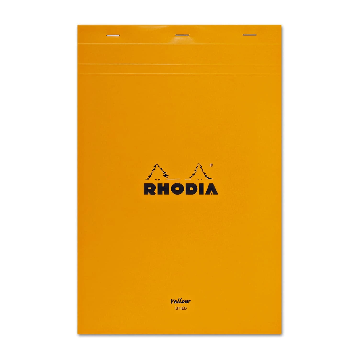 Legal pads with extra-wide paper features an exceptionally smooth satin finish. Lined or gridded with pale violet ink. All pads are micro-perforated for easy and clean removal of each page. The orange or black cover is scored to neatly fold back and is top-bound with reinforced staples. The stiff cardboard back cover makes writing or sketching easy and portable. Fountain pen friendly!