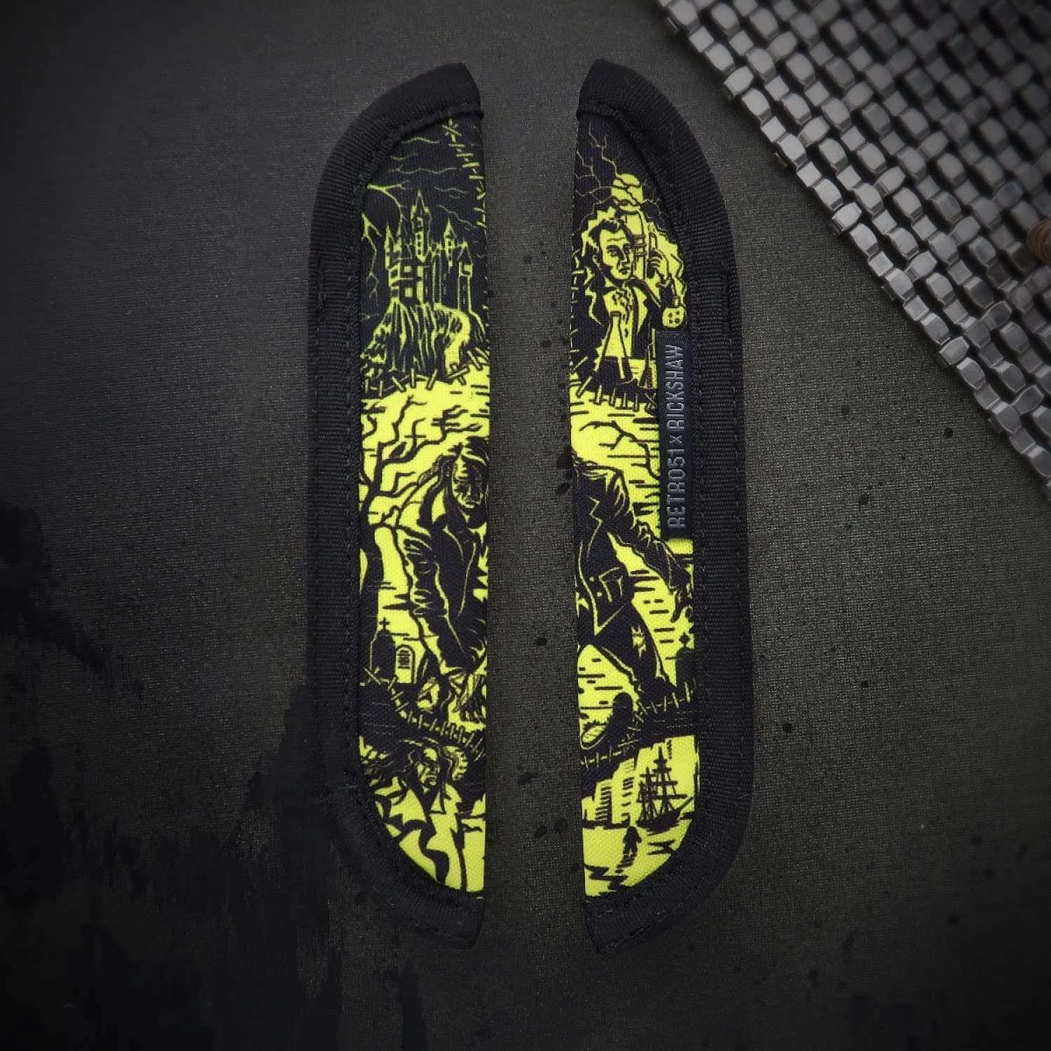 Protect your fine writing instruments from the rigors of daily carry with the comfort and style of a Rickshaw Bagworks Solo pen sleeve. An exclusive collaboration with San Francisco’s Rickshaw Bagworks and Retro 51, this pen sleeve is designed to match the Retro 51 Tornado Popper “Frankenstein” rollerball pen. The medium size of the sleeve can also accommodate pens that are up to 5.5 inches long and 0.6 inches in diameter (140mm x 15mm). The soft, plush interior of the pen sleeve keeps your pen snug and comfy. This Halloween, grab one before it grabs you!