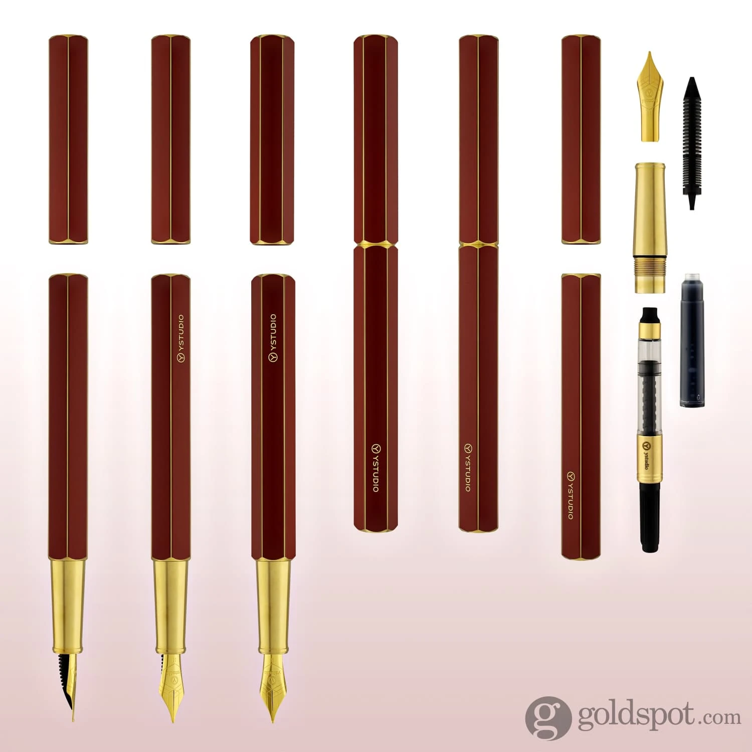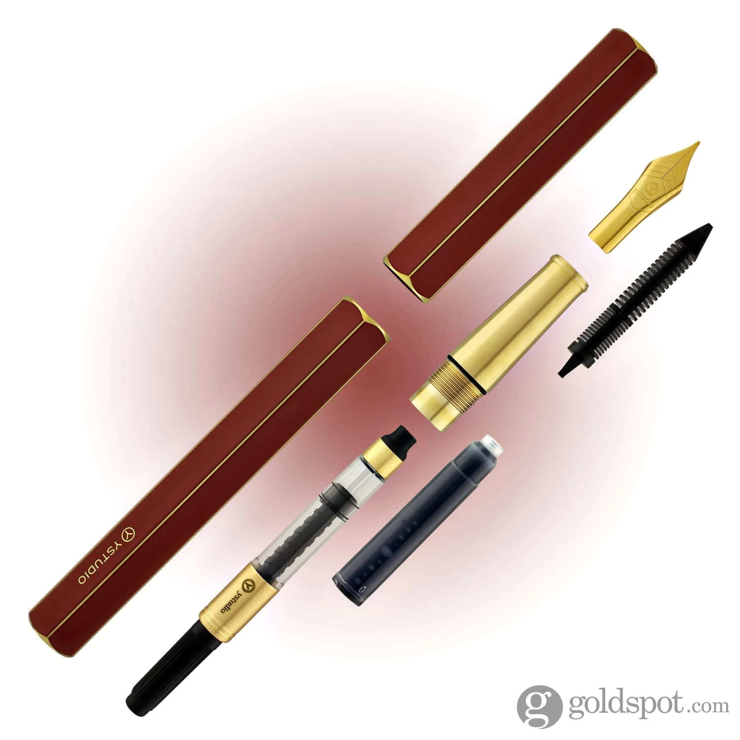 ystudio Classic Fountain Pen SpecificationsEdition: Standard CollectionBody Material: Brass with lacquerNib: Gold-plated stainless steel #5 size made by Schmidt (Germany)Filling Mechanism: International cartridge /converter (both included)Pen length, closed: 5.43 in. / 138mmPen length, open (cap off): 4.92 in. / 125mmPen length, posted : cap cannot postPen barrel diameter: 0.47 in. / 12mmPen grip diameter: 0.3 in. – 0.37 in. / 7.8mm – 9.5mmPen weight: 1.5oz / 42.5gIncludes instruction booklet and lifetime warranty